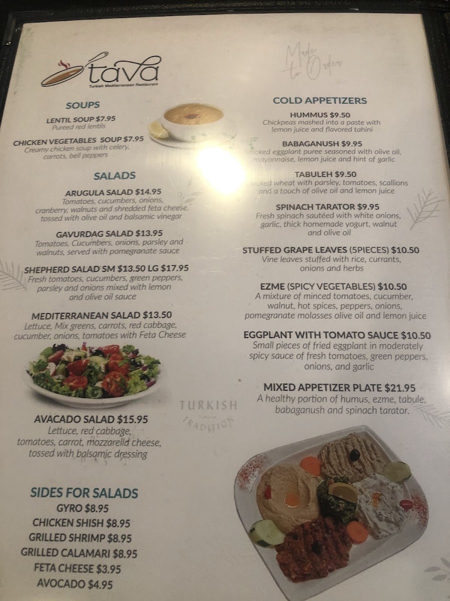 Served with tomatoes, cucumbers, onions, parsley, walnuts and pomegranate sauce.